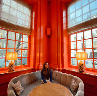 Just in the backside of the Dalloway terrace is the uber gorgeous cafe/restaurant/bar of the Bloomsbury hotel. high ceilings., painted in coral, so ecstatic and classy at the same time. I couldn't get over the bold interiors of this place. this place is perfect for an evening stop for coffee and some yummy deserts. Its also a gorgeous place for dinner or drinks at the bar but since we are talking about ill stick to that, haha.